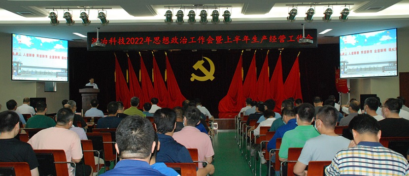 在建黨101周年,喜迎二十大召開之際,河冶科技2022年思想政治暨上半年生產經營工作會于7月8日在公司多功能廳召開。參加會議的有公司黨委委員、經理層、中層干部、黨支部書記、部門骨干、采購營銷人員、團委委員和子公司河冶住商黨總支委員及經理層人員等共計120余人。安泰科技黨委副書記、總經理畢林生到會指導。會議由公司黨委副書記、常務副總經理梁敬斌主持。